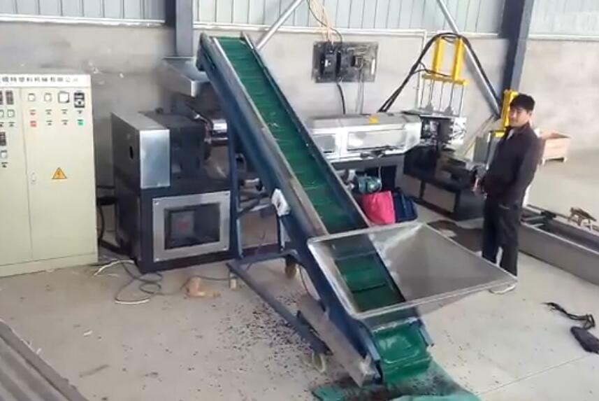 ABS two stage plastic recycling extruder granulator machine testing in buyer''s workshop